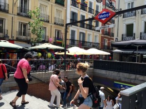 Para esta edición de las celebraciones del Orgullo de Madrid 2016 el Metro de Chueca luce su mejor gala, y como no podía ser de otra manera, los colores del arcoíris visten las paredes que a través de largos pasillos permiten la salida y acceso de los viajeros. Es como entrar en un laberinto multicolor que promueve la diversidad y desde donde se puede leer mensajes como Feliz Orgullo o LOVE.