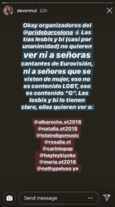 La problemática es que han decidido por unanimidad pedir la exclusión, en dicha celebración del Orgullo barcelonés, a mujeres que han participado en el Festival de Eurovisión y a señores que se visten de mujer. Una cultura drag que describen como ofensiva y despectiva, que probablemente no conocerán bien.