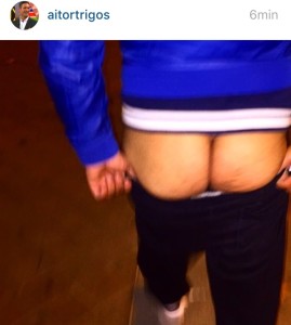 Aitor al trasnochar por las calles de Madrid puede hacer lo que quiera, ejemplo de ello es lo que sucedió en la noche de ayer mientras iba caminado por la calle llegando a su casa, decidió bajarse los pantalones y enseñarnos su culo con él siguiente comentario “Hoy le enseñamos el culo al mundo!!! Dedicada a todos los que quieren dar por culo!!! Pues que se queden con las ganas!!!” Y así es Aitor alguno nos quedamos con las ganas tras ver tu foto.