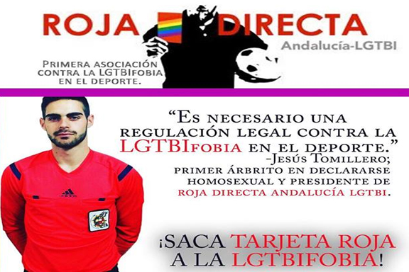 Jesús Tomillero, el joven árbitro gaditano natural de La Línea de la Concepción (Cádiz) que abandonó el arbitraje en el fútbol tras los ataques homófobos que recibió el pasado 26 de marzo, está más que nunca implicado con la lucha para lograr la aprobación de una Ley contra la LGBTIfobia en el deporte. El pasado viernes presentaba en sociedad a su nueva asociación Roja Directa y al día siguiente era invitado a asistir al palco del F.C. Barcelona para presenciar un amistoso entre el club azulgrana y el Granada a instancias del club Panteras Grogues.