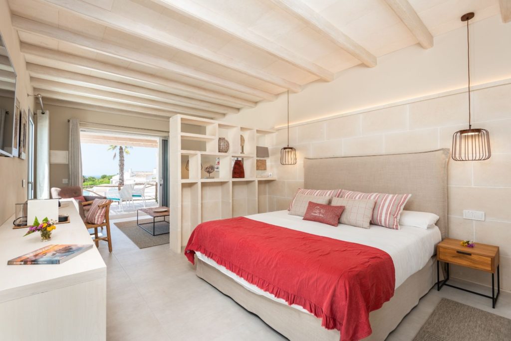 La finca de Llucasaldent Gran se encuentra en un entorno mágico rodeado por más de 7.000 cepas y 800 olivos, que combina a la perfección la tradición menorquina con el estilo del mundo moderno. Durante todo el año, Cristina y Germán se encargan de hacer de esta exclusiva masía, ubicada en el corazón de la isla, un lugar idóneo para quienes buscan autonomía, tranquilidad y descanso.