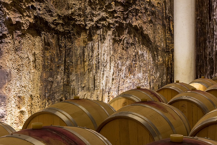 La crianza de los vinos de Rioja exige reposo, calma, luz y temperaturas controladas. Por eso nuestros vinos descansan en un amplio calado de 1.600 m2 excavado en roca viva, dotado de un sistema automático de ventilación y niveles de temperatura y humedad controlados en todo momento. Gracias a su amplitud, las barricas se hallan extendidas a una sola altura lo que favorece un control individualizado de análisis, cata y evolución de los vinos.