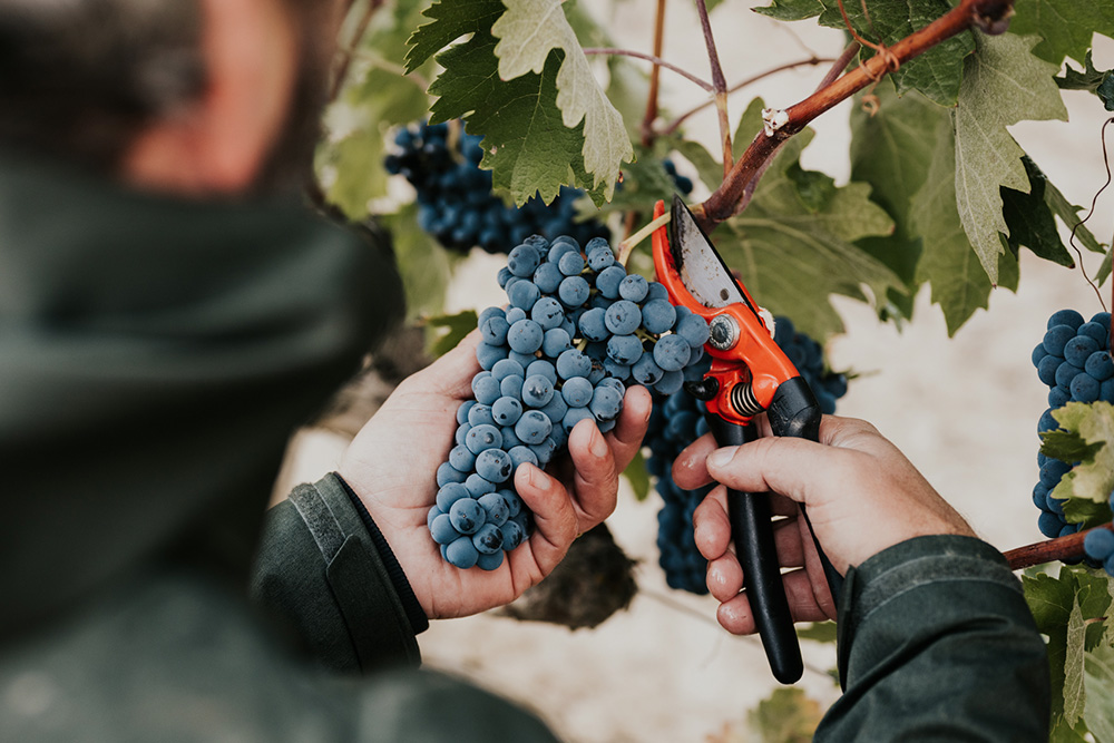 Vendimiamos nuestras uvas de forma manual en el 100% de nuestros viñedos, y además se lleva a cabo por los mismos trabajadores desde hace ya más de 10 años. Confiamos en ellos porque conocen a la perfección nuestras pautas de calidad, y por tanto saben que uva deben cortar, haciendo de este modo una primera selección a pie de viña.