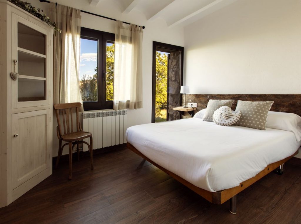 La masía data de 1864 y ha sido reformada en varias etapas. Durante el año 2015 la hemos preparada para hacerla más amplia, y acogedora. La casa, encarada a levante, tiene una terraza que es un mirador al valle.
