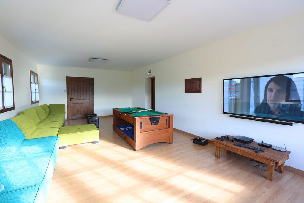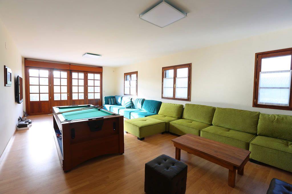 El alojamiento tiene capacidad para 16 personas más 2 posibles plazas supletorias extra, encontrándose distribuido en planta baja, primera y bajo cubierta, con un total de 8 habitaciones dobles, 6 baños (2 incorporados a habitaciones), estar-comedor, estar-ocio y cocina independientes.