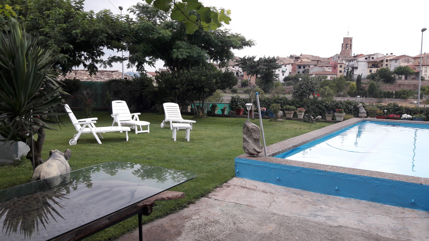 A tan sólo 5 minutos a pie o en coche del dúplex, encontramos el área del jardín, piscina (abierta durante la época estival), barbacoa y futbolín todo ello de uso compartido con los dueños. El horario es de 11:00 horas a 19:00 horas; hora ésta en la que se deberá abandonar el reciento por motivos de mantenimiento de las instalaciones. Disponen de mesas, sillas y menaje de cocina (carbón/leña a cargo del inquilino). Los propietarios no se responsabilizan de los accidentes/lesiones que pudieran ocurrir.