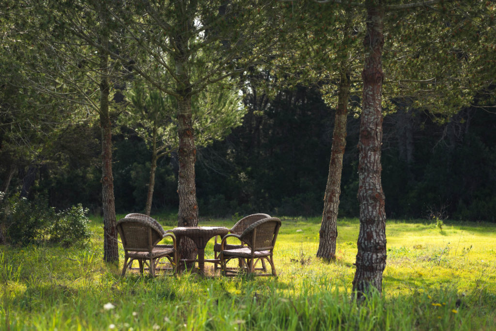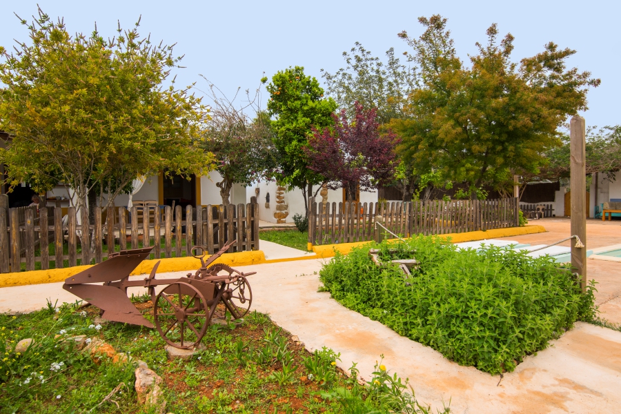 Se trata de una finca de unos 25000 mtrs de tierra roja con almendros, higueras, algarrobos y un bosque de pinos que envuelven la casa dándole cierto aire de magia y belleza de la tierra ibicenca.