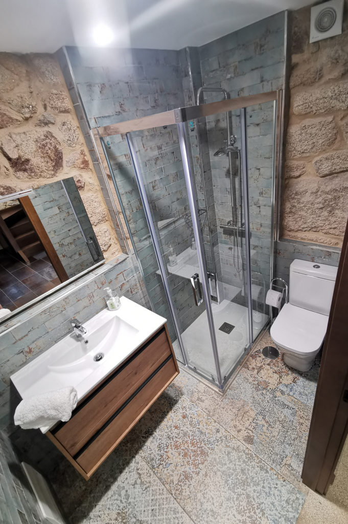 Respetando toda la estructura antigua del edificio y el estilo del resto de instalaciones. Techos de madera tratada, suelos cerámicos de primera calidad con calefacción geotérmica, iluminación led y electrodomésticos de bajo consumo.