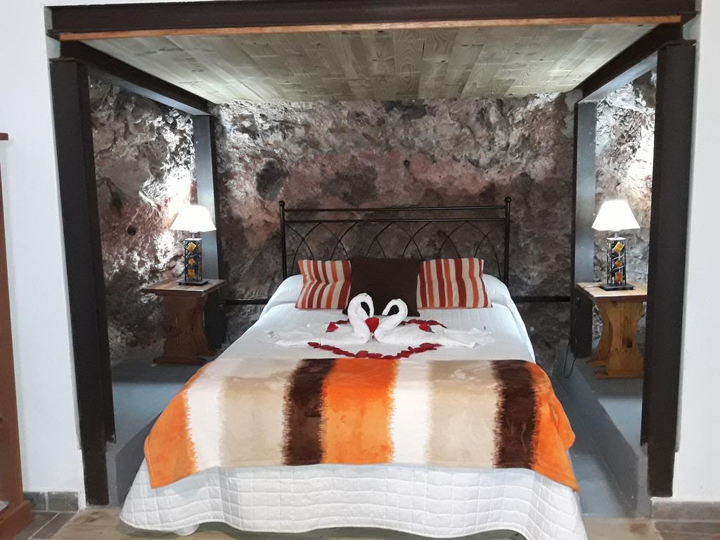 La cama del dormitorio está ubicada dentro de una cueva natural, que le confiere unas condiciones excepcionales para el descanso. Medidas de 1.35 cm., con colchón nuevo de alta gama.-