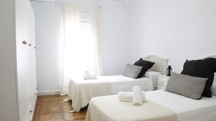 Luminosa estancia con dos camas de 90 x 200 cm separadas. Nuestras habitaciones están diseñadas para que nuestros huéspedes disfruten de un sueño confortable y reparador.