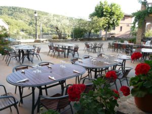 El restaurante sirve platos caseros y ofrece una amplia selección de vinos somontanos. También hay un bar y una terraza con vistas a las montañas.