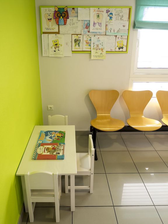 Un espacio bien iluminado y acondicionado para que las esperas se te hagan más cortas. Incluyendo además una zona para niños donde podrán dibujar y entretenerse como si estuvieran en casa.