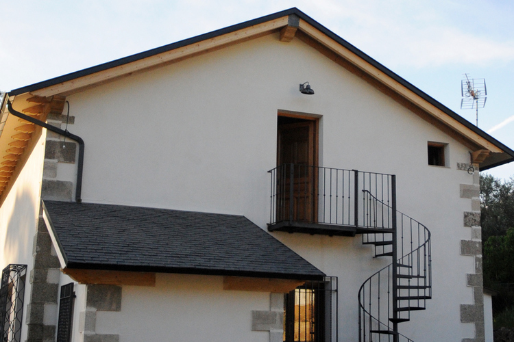 Este complejo rural se encuentra en el Valle del Tietar, provincia de Ávila, una finca de siete hectáreas situada en el Barranco de las Cinco Villas, en un cruce de caminos entre los pueblos de MombeltránSanta Cruz Del Valle y San Esteban Del Valle. Enclavada entre montañas y rodeada de fresnos, castaños, pinos y olivos, la propiedad se caracteriza por la tranquilidad y la posibilidad de disfrutar de la naturaleza desde la misma puerta de la casa. Una vivienda única en los alrededores, tanto por su construcción como, sobre todo, por el entorno del que disfruta.