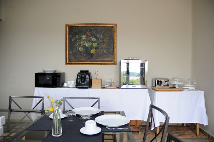 También se ofrece un espacio destinado a comedor donde los huéspedes puedan disfrutar del desayuno, comida o cena. No dispone de cocina pero si cuenta con nevera, microondas y cafetera así como platos, vasos, cubiertos y servilletas desechables.