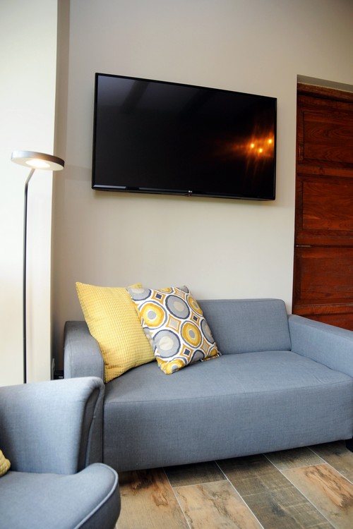 Para poder leer un rato, charlar o ver una película en común, hay una sala de estar habilitada con una mesa, un amplio sofás y cuatro sillones para que los visitantes se acomoden a sus anchas frente a una televisión acoplada en la pared.
