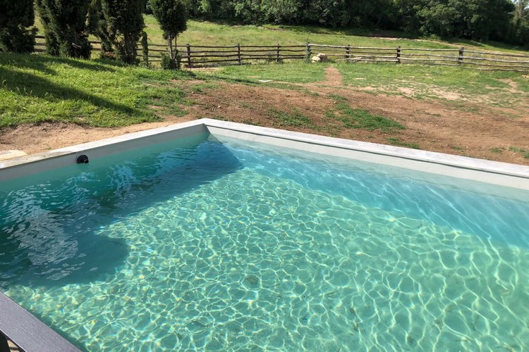 En el exterior, nuestra casa cuenta con un amplio jardín perfectamente cuidado al que dan sombra dos grandes fresnos, con mesas de piedra y asientos habilitados, en el que el murmullo del agua del río que circunda la finca es el perfecto compañero para los amantes de la naturaleza y el relax. En el lado opuesto, están la piscina y una terraza mirador equipadas con el mobiliario necesario para que nuestros huéspedes puedan refrescarse en verano y disfrutar de las vistas durante todo el año. El complejo también cuenta con un cenador con cuatro mesas con bancos de madera.