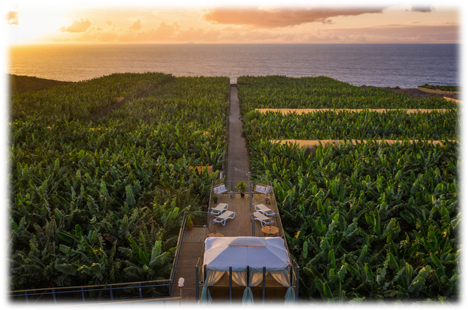 La Hacienda colinda a la izquierda con un paraje de playas y acantilados muy cercanos, también se encuentra El faro de Punta Teno a 10 km aproximadamente y a la derecha con un paisaje de costa dónde poder tomar un baño en multitud de charcos naturales.
