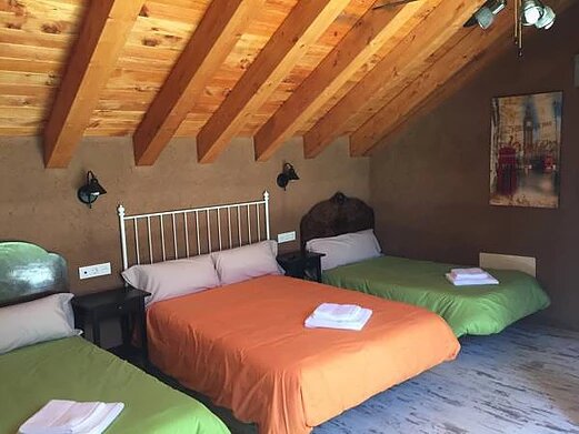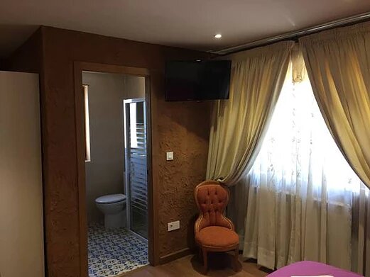 En las plantas superiores tenemos nuestro hostal. Cuenta con cuatro habitaciones con baño privado, armario, TV de pantalla plana y calefacción. Aunque sólo nos han dado una estrella, las calidades de los materiales y servicios equivalen a un hostal de tres estrellas..