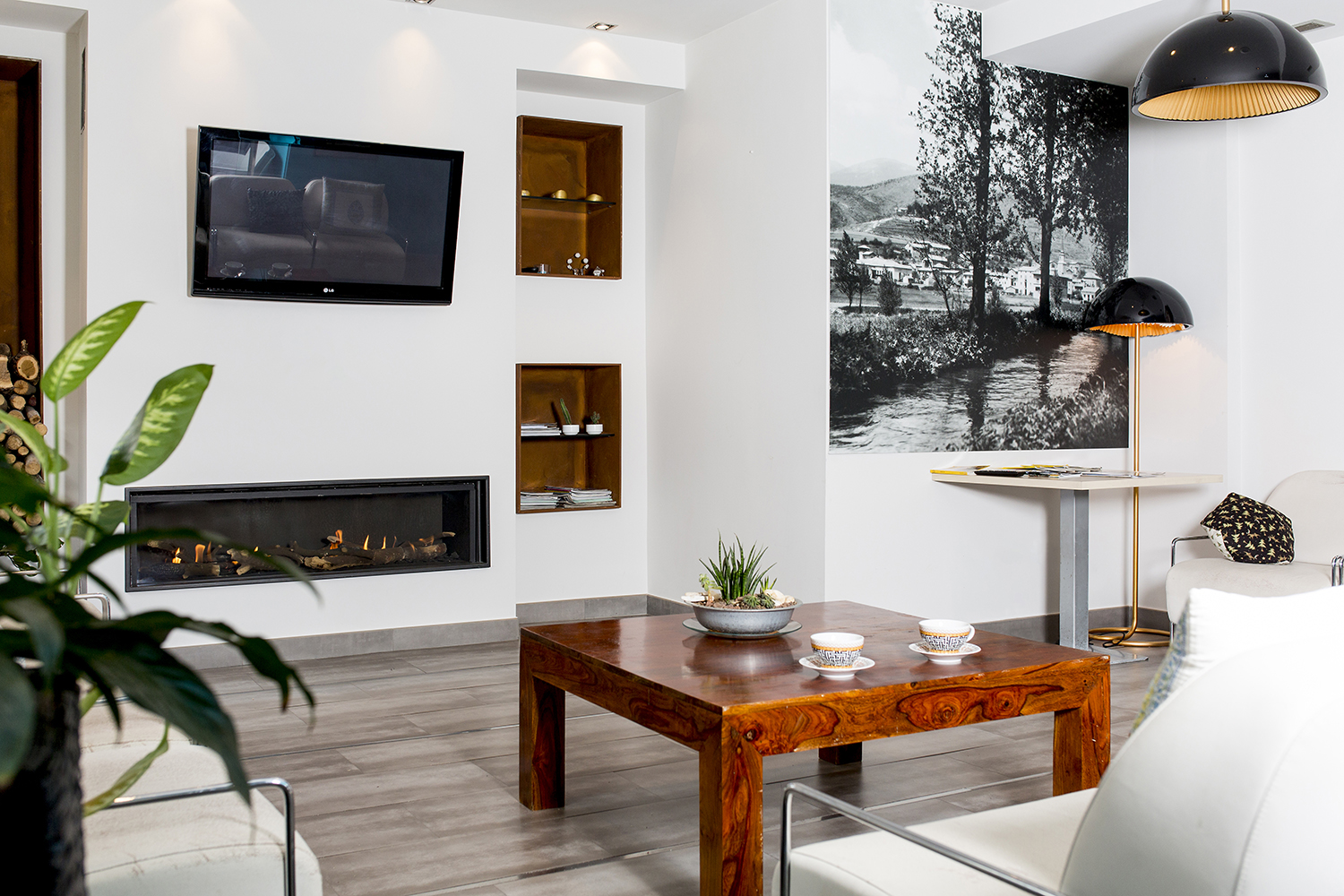 Sala de TV con chimenea