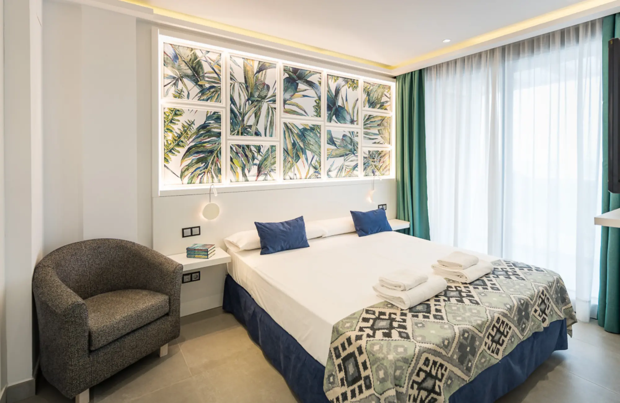 Para empezar, el Estudio | Suite dispone de 50 m² y cuenta con cocina totalmente equipada y espacio de trabajo. Además, incluye un balcón con vistas laterales al mar, lo que lo convierte en una opción ideal para estancias cómodas y funcionales.