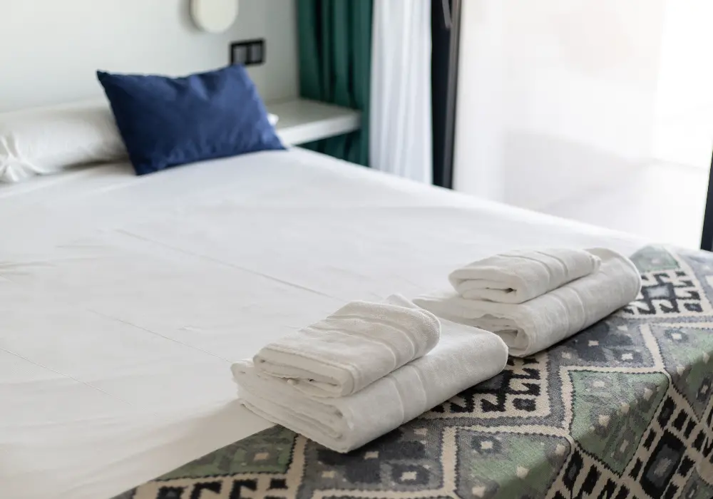 Finalmente, el Suite-Apartamento Deluxe cuenta con dos dormitorios con cama de matrimonio. Aunque el baño está integrado en uno de ellos, la distribución resulta funcional y cómoda para estancias prolongadas.