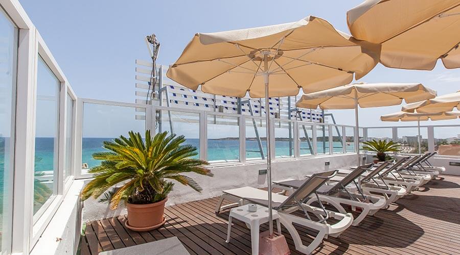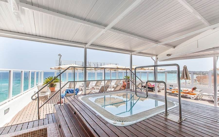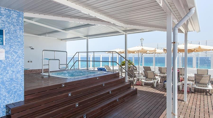 Además, el relax estará garantizado con nuestra fantástica sauna, el hamman y el servicio de masajes bajo petición y por un suplemento. También hay a disposición de los huéspedes una terraza con vistas a la playa dotada de tumbonas, sombrillas y un jacuzzi para desconectar de la rutina.