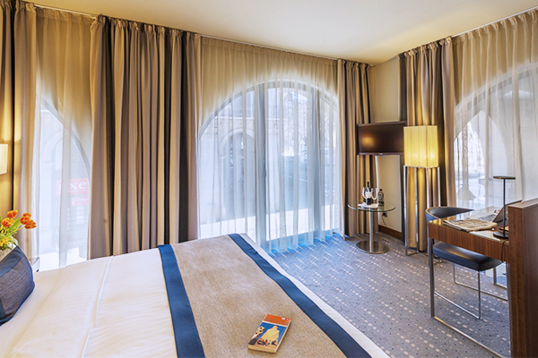 El hotel cuenta con elegantes habitaciones provistas de las últimas tecnologías, y destaca por su distinguida arquitectura, que armoniza perfectamente con las históricas calles circundantes.