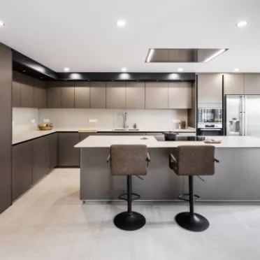 ¿Sueña con una isla de cocina moderna y de diseño, una cocina elegantemente equipada, una cocina decorativa de madera ecológica, un comedor a medida con extensión de encimera?