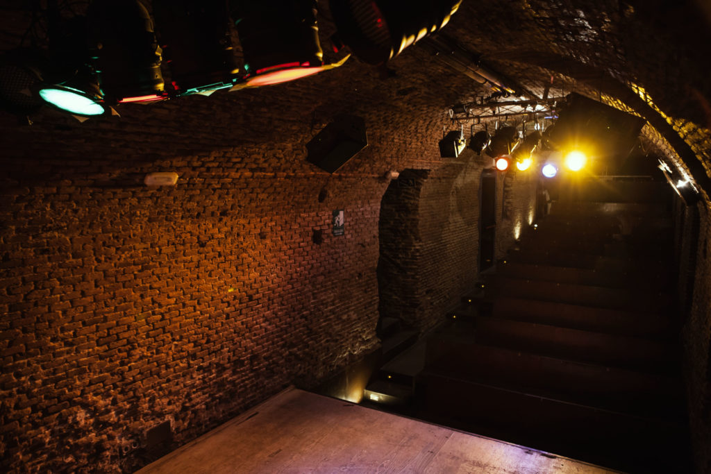 .- Cava Baja o Cueva – Espacio escénico albergado en una cueva de ladrillo visto que en el S. XIX daba servicio como antigua carbonera del edificio. Tiene un escenario de 3,62 x 4,08 m. y un aforo de 80 personas sentadas en sillas plegables y bancos corridos. El espacio de las sillas es un espacio multiusos que da servicio según las necesidades.