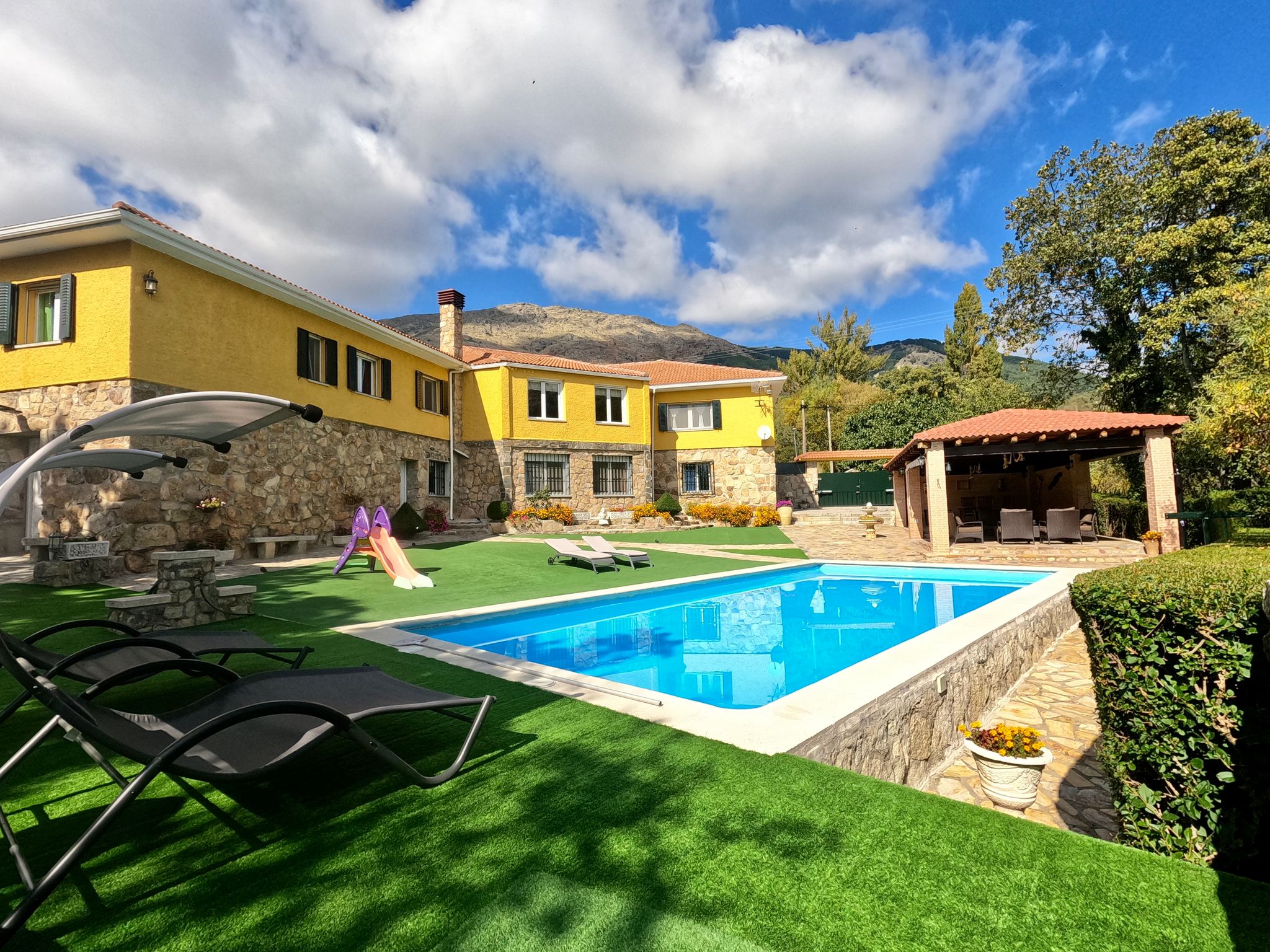El Huertar de Valentínes un chalet familiar totalmente independiente con jardín, barbacoa y piscina privada ubicado en la falda de Mondalindo en plena naturaleza, a tan solo 45 minutos de Madrid.