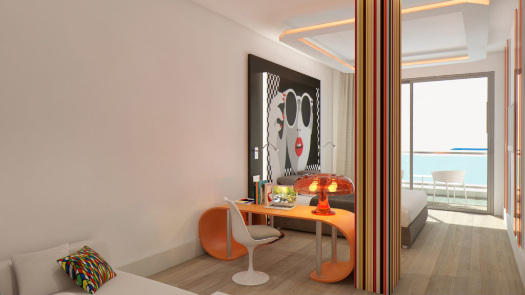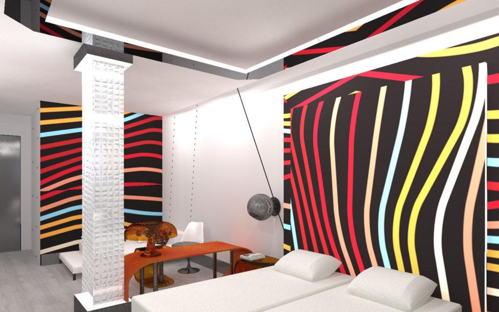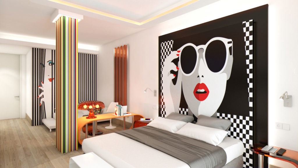 Cada una de las plantas del hotel propone una decoración distinta en las originales habitaciones. Todas disponen de dormitorio, zona de estar y baño completo con ducha.