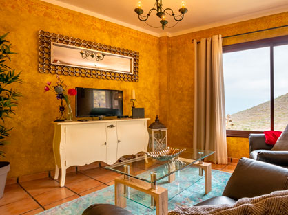 Dúplex independiente amplio y moderno, cuenta con 2 habitaciones cada una de ellas en suite con baño, salón comedor y cocina en concepto abierto con acceso directo a la terraza que dispone de una piscina, zona de tumbonas, barbacoa y jardín. Disponemos de una terraza en la parte alta de la vivienda para disfrutar de las maravillosas vistas al mar la Isla de la Gomera y el atardecer. La vivienda cuenta con Televisión satélite, aire acondicionado, wifi, electrodomésticos y lavadora.
