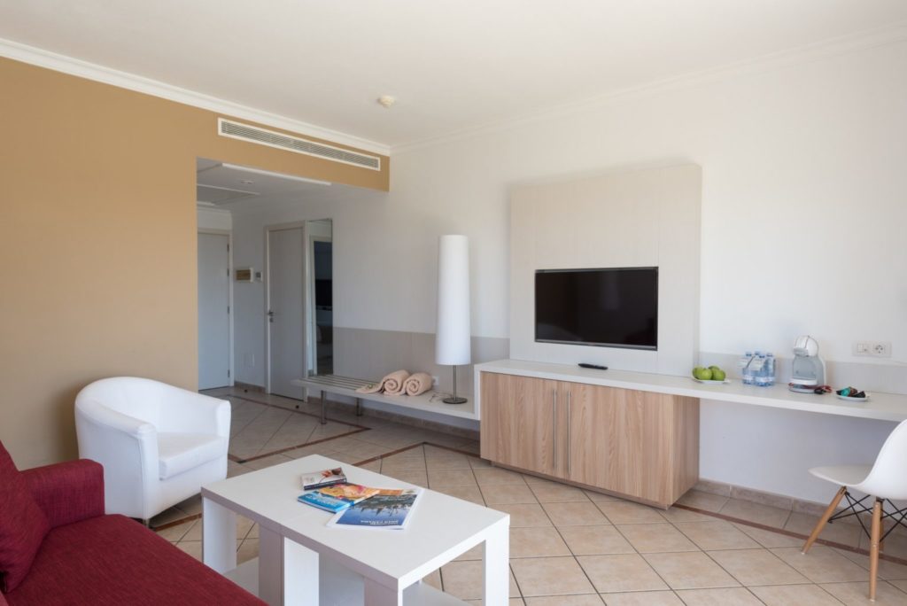 Dispone de 58 suites amplias, con terraza o balcón y vistas al campo de golf, las dunas de Maspalomas o la piscina. Cuentan con salón y dormitorio independiente.